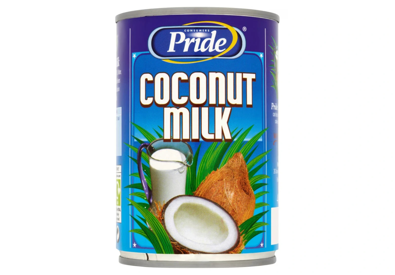Pride Coconut Milk can be used for curries, ice cream, cookies, dessert and cakes. Product may solidify if stored at low temperatures. Stirring or gentle warning of the product should return it to its liquid state and not affect its performance. Suitable for vegetarians. Shake well before use.